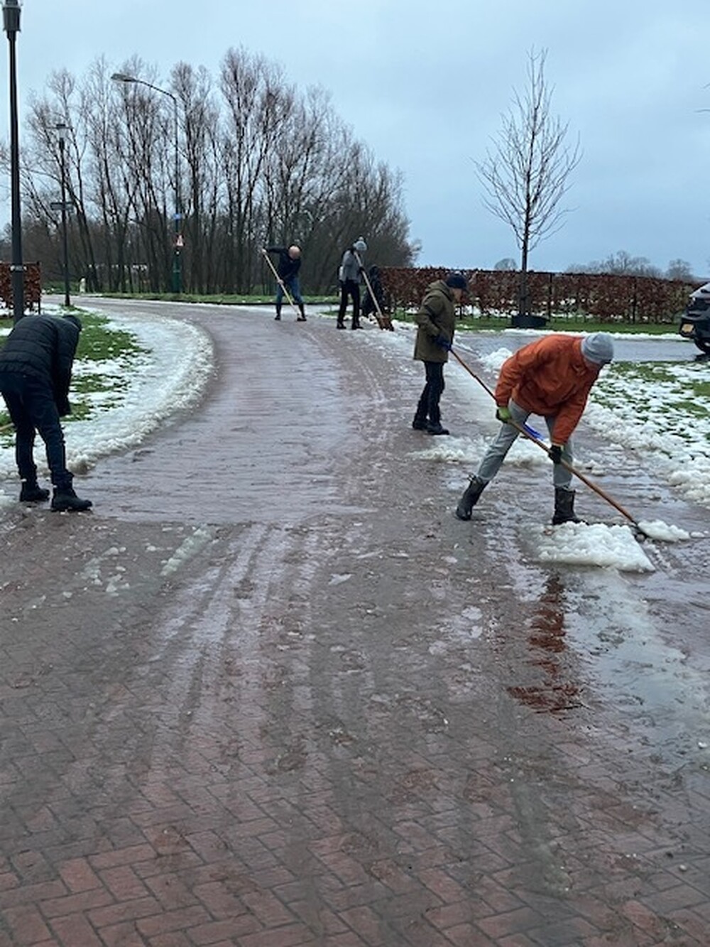 Op eigen initiatief zijn diverse wijkbewoners de handen uit de mouwen gestoken om de Parklaan weer veilig te maken. Met schoppen en bezems werd een groot gedeelte van de straat en de looproutes ijsvrij gemaakt, zodat voetgangers, fietsers en auto’s weer beter door konden. Een mooi staaltje no-nonsense samenwerking: even samen aanpakken, met zichtbaar resultaat.